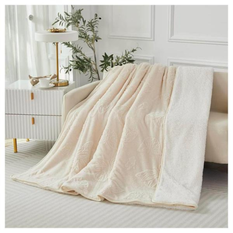 Violet 2 rétegű pillangó mintás ágytakaró/pléd 230x200 cm - Krémszínű HD230200-5A Violet 2 rétegű ágytakaró luxus minőségű, puha tapintású, ideális kiegészítője hálószobájának vagy nappalijának. A kétrétegű kialakításnak köszönhetően maximális kényelmet és melegséget biztosít, így tökéletes választás a hidegebb napokon. A pillangó mintás dizájn eleganciát és frissességet hoz otthonába, miközben a puha, bordázott textil biztosítja a kényelm