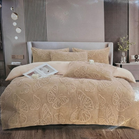 Violet Plüss Ágynemű Garnitúra – 7 Részes FD-1-1A Violet márkájú garnitúra a minőséget és az esztétikumot ötvözi. A huzatok felületén található finom, dombornyomott pillangó minta egyedi és elegáns megjelenést kölcsönöz az ágynak. A szett praktikus kialakítású: a lepedő mellett két darab paplanhuzatot és négy darab párnahuzatot (két méretben) tartalmaz, így egy teljes franciaágyat egységesen felöltöztethet vele.A használat kényelmét növeli a minős