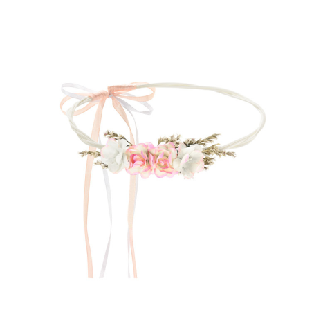 Virágkorona rózsaszín és krémszínű virágokkal. Mérete állítható.