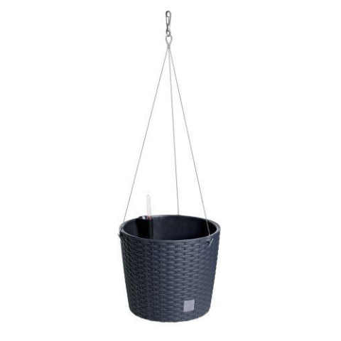 Virágcserép beltérre és kültérre, 8,9 l térfogatú, érdekes kialakítású. Felfüggesztésre alkalmas, kerek alakú. Minőségi anyagok - műanyag és fém. Antracit színű, átmérője 25,6 cm, magassága 21,9 cm. Vegyen egy kerek Prosperplast RATO ROUND virágcserep