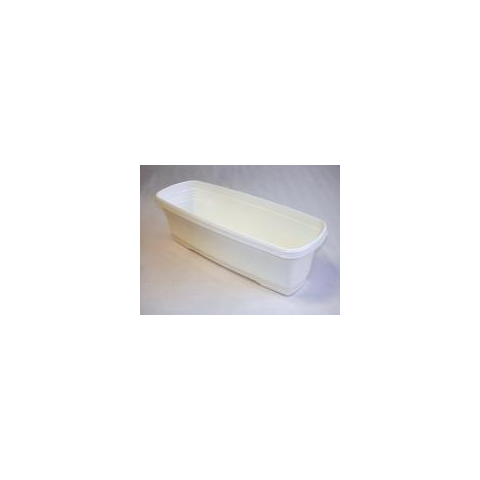 Fehér színű, műanyag virágláda+tálca. 500 mm hosszú, 200 mm széles és 160 mm magas.