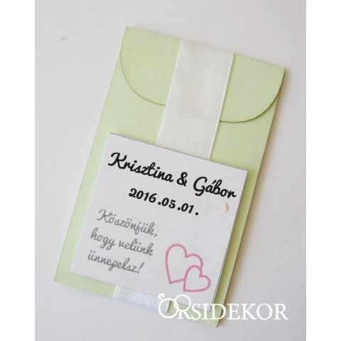 Virágmag papírtasakban szalaggal díszítve - akár ültetőkártya is lehet! Ha az esküvődön olyan köszönetajándékkal szeretnél kedveskedni a vendégeknek, ami nem a sarokban porosodik már másnap, akkor az élő növény remek megoldás. A magvak fejlődése hason