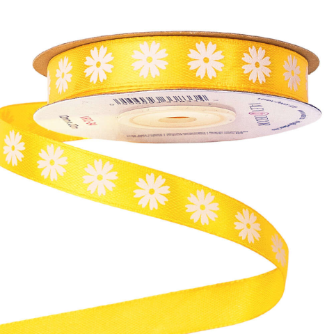 1 kép Virágmintás szatén szalag 12mm x 20m - Sötét citromsárga