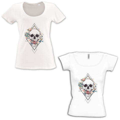 1 kép Virágos koponya - Mély kivágású & Csónaknyakú Női Póló