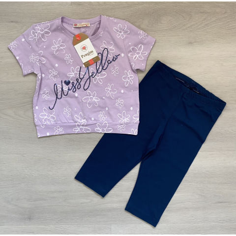 1 kép Virágos lány nadrágos szett, lila-sötétkék, 128