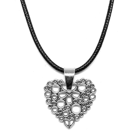 1 kép Virágos Szív medál fekete bőr nyaklánccal