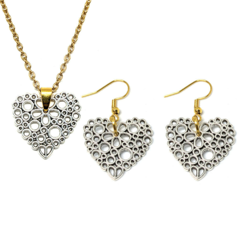Virágos Szív medál + fülbevaló szett, arany színű ékszer szett 1 kép