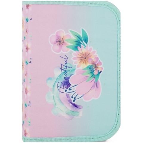 Virágos tolltartó klapnis, üres, rózsaszín-zöld