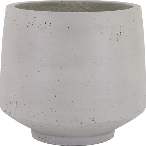 A kerek virágtartóval a növények dekoratívan mutatnak a kertben, a teraszon vagy az erkélyen. A kerek cserép kültéri használatra alkalmas, de egy megfelelő alátéttel beltérben is használható. Az integrált talapzat stílusos megjelenést kölcsönöz. A felhasznált anyag érdes felületű, természetes szürke színű könnyű cement. Víz- és UV-álló tulajdonságaival tűnik ki. A virágtartó alján vízelvezető lyuk található. Így a felesleges eső- vagy öntözővíz