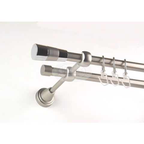 Utolsó darabok! Alacsony készlet! A VIRGINA 200 cm-es nikkel-matt színű 2 rudas fém karnis szett tartalma: 2 db 200 cm-es nikkel-matt színű 16 mm átmérőjű fém karnisrúd 2 db Virginia típusú nikkel-matt színű fém karnis végzáró 2 db Kansas típusú, kupak