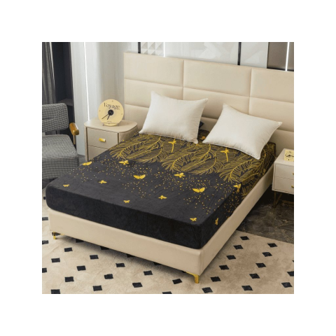 A VISATA mikroplüss lepedő 160 x 200 cm -es bájos kialakításával tűnik ki, fekete alapon arany pillangó motívumokkal. ideális a téli hónapokra, a mikroplüss anyaga kellemesen melegen tart, ugyanakkor gyorsan meg is szárad.