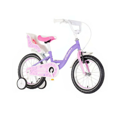 Visitor Lovely Princess 16" lila gyerek kerékpár - A tökéletes választás kis hercegnőknek! 👑 Ez a bájos, lila színű kerékpár ideális választás a kis hercegnők számára, akik most tanulják a kerékpározás alapjait. A 16 colos kerékméret és a stabil...