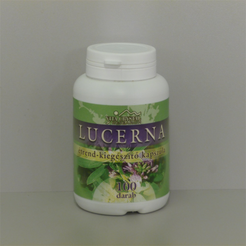 Vita Crystal Lucerna Kapszula 100 db A Lucernacsíra régóta ismert egészségügyi elõnyeirõl. A Lucerna kapszula ezt a különleges növényt hozza el Önnek a legtisztább és leghatékonyabb formájában. A Lucernacsíra gazdag ásványi anyagokban, enzimekben és nyom