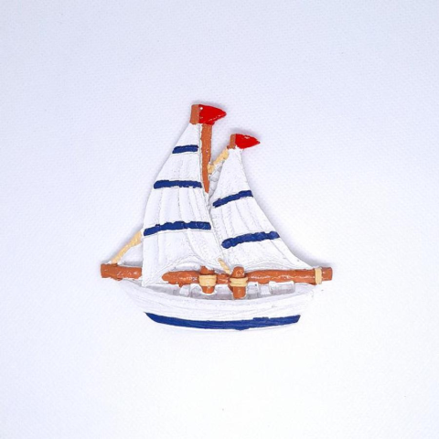 Vitorláshajó, polyresin, öntapadós. Mérete: 80x83x10 mm
