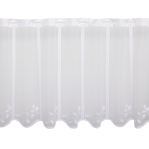 1 kép Vitrázsfüggöny V1003 45 cm magas fehér levélmintás méteráru