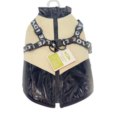 Vízálló bélelt kutyakabát és dzseki beépített hámmal - Bézs - L