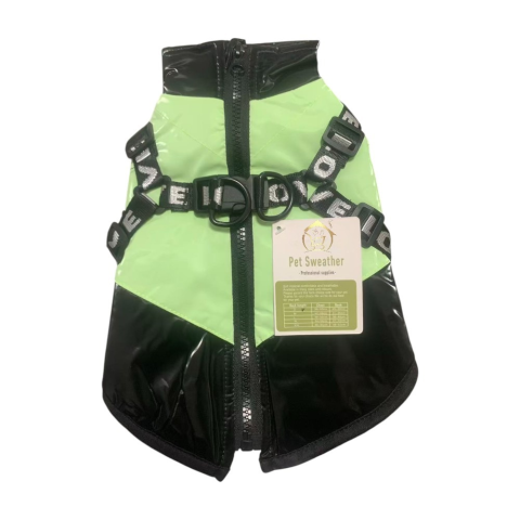 Vízálló bélelt kutyakabát és dzseki beépített hámmal - Zöld - S
