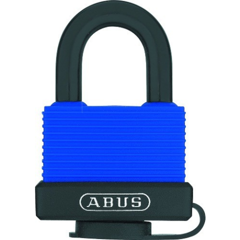 Vízálló lakat Abus 717IB45 2 db kulccsal Megnyugtató biztonság, extrém időjárás esetén is. Rozsdamentes alkatrészek, réz lakatház, edzett acél kengyel műanyag borítással, és zárnyílás védelemmel. Kétoldali golyós reteszelés.