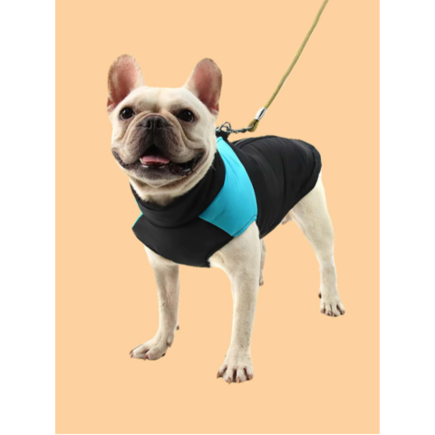 Vízálló téli kutyamellény, fekete-kék, 4XL-es