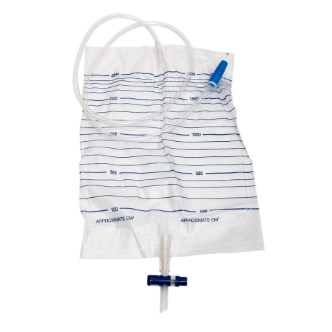 Alsó kifolyású, steril vizeletgyűjtő, keresztcsapos (T csapos) leürítéssel. Urológiai katéterrel ellátott betegek vizeletének vagy testnedvek összegyűjtésére Térfogat: 2000 ml 100 ml -es skálabeosztás PVC kiöntőcső keresztcsappal a zsák könnyű és higién