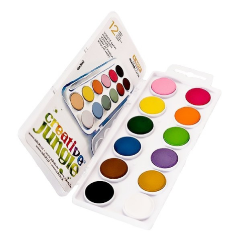 Vízfesték CREATIV JUNGLE 12 darabos kisgombos, 12 szín, 22.5 mm - jó fedőképesség, erős színek