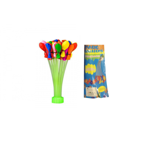Csapra vagy kerti locsolóra illeszthető 37 db-os vizibomba szett. A lufikba vizet töltve egy mozdulattal rengeteg muníciót készíthetünk amellyel kezdődhet a csata! A szett tartalma egy 37-es vízibomba töltés egyszerre ! Mérete:13x25x5 cm
