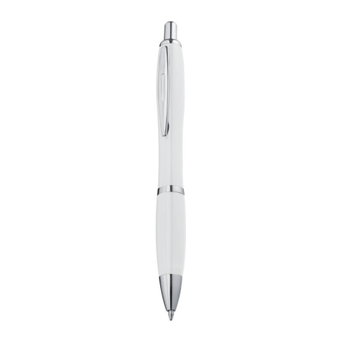 Műanyag golyóstoll, magas fényű fém elemekkel,kék tollbetéttel és csúszásgátló fogórésszel elláttva