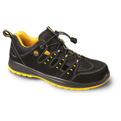- Felső rész: Velúr bőr, 1,6-1,8 mm vastagság - Belső: Légáteresztő hálós textil - Belső talp: HI-POLY anatómiailag kialakított könnyű PU hab, szövettel bevonva, antisztatikus - Talp: PU/PU olajálló, antisztatikus, csúszásgátló - Acél orrmerevítő - EN ISO