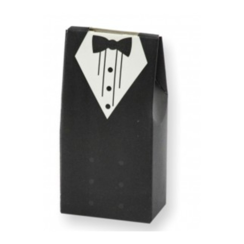 Vőlegény mintás apró dobozka Egyedi esküvői dekoráció és ajándéktartó egyben. Az esküvői vendégeknek szánt apró ajándékok becsomagolásához praktikus dobozka ez a vőlegény mintás ajándéktartó. Anyaga esrős karton, így akár ültetőkártyaként megírva is
