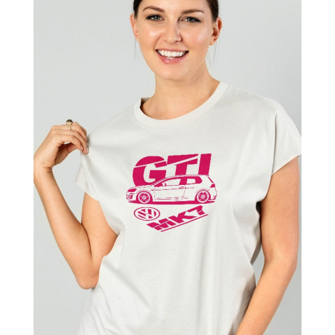 Autós női póló, Volkswagen GTI Mk7. Öltözz össze autóddal vagy ha még csak álmodozol egy Volkswagen GTI Mk7 típusú autóról a pólódon garantáltan láthatod kedvenc autódat. Lepd meg magad egy szuper pamut női pólóval. Kiváló minőségű férfi és női pólók,