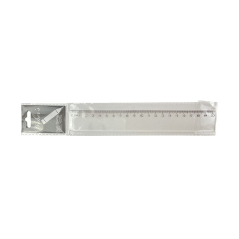Átlátszó, műanyag, egyenes vonalzó egyesével csomagolt.