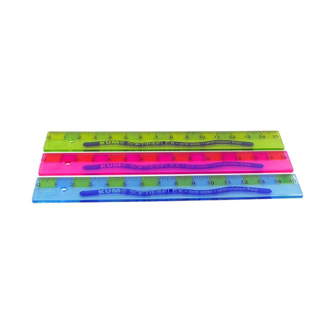 Vonalzó KUM hajlékony átlátszó színes 15 cm Hajlékony, flexibilis anyagból készült vonalzó. Hossza 15 cm.