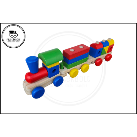 Fa vonat színes építőkockákkal Anyaga: Fa Mérete: Hosszúság: 42 cm Magasság: 12,5 cm Szélesség: 7,5 cm Tisztítása: száraz törlőkendővel Ajánlott korosztály: 3 éves kortól