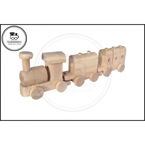 Fa vonat éptőkockákkal Anyaga: Fa Mérete: Hosszúság: 44 cm Magasság: 13 cm Szélesség: 7 cm Tisztítása: Száraz törlőkendővel Ajánlott korosztály: 3 éves kortől