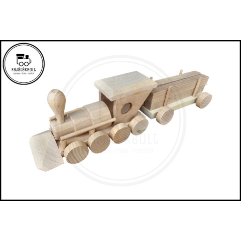 Fa vonat - rönkszállító A mozdony mögötti kocsin 4db rönk / gerenda van Anyaga: Fa Mérete: Hosszúság: 39 cm Magasság: 11 cm Szélesség: 9,5 cm Tisztítása: száraz törlőkendővel Ajánlott korosztály: 3 éves kortól