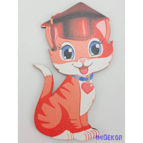 Vörös nagy cica tábla ballagó kalapban dekorációs kellék 1 kép