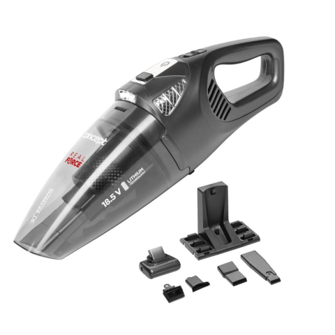 VP4380 REAL FORCE 18,5 V kézi porszívóA Concept VP4380 kézi porszívó gyors és hatékony takarításhoz. A magas szívóteljesítmény, a hosszú élettartam és a gazdag tartozékkészlet a makulátlan tisztaság garanciája. Gyors takarításA Real Force VP4380 kézi porszívó segít tisztán tartani otthonát, hogy mindig kényelmesen érezze magát. Mindig kéznél van, a takarítás vele rendkívül gyors és kényelmes. A motorizált turbókefe segítségével hatékonyan felszívja