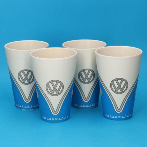 VW kék retro Volkswagen bambusz pohárszett (4 db)