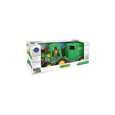 Indulhat a farmra az utazás! Ez a Wader Traktor lószállító utánfutóval tökéletes választás a munkagépek és traktorok szerelmeseinek. Valósághű megjelenésével és színeivel elvarázsolja a gyerekeket, miközben izgalmas szerepjátékokat játszhatnak el a tanyán!