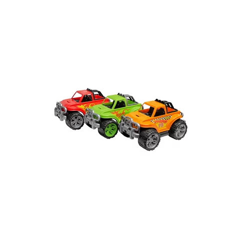 Nagy és színes terepjáró, erős műanyagból! A Wader műanyag terepjáró egy stabil terepjárgány, amit akár a homokozóban is bátran tolhatsz. A terepjáró vezetőülésére beültetheted kedvenc játékfigurád, a nagy kerekek a legnehezebb tereppel, a süppedős homokkal is könnyen megbirkóznak. A terepjáró nagy teherbírású, a kedvenc játékaid is elszállíthatod vele. A Wader műanyag terepjáró méretei: 38 x 23 x 22 cm. A játékok külön kaphatóak. A megjegyzésben k