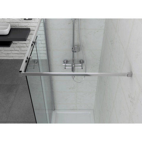 WALK-IN Zuhanyfal tolóajtóval, 6 mm-es biztonsági üveg fix fal, 5 mm-es biztonsági üveg tolóajtó, króm profilok, króm fogantyú