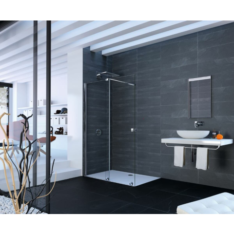 FIGYELEM! Ez csak a zuhanykabin 1/2 része, csak a másik felét kell megvásárolni a kívánt méretben. Zuhanyszekrény bejárható tálca és profilszín nélkül, fényes króm színben, a kitöltés átlátszó üvegből készült, díszítés nélkül. A termék Hüppe Anti-Plaque technológiával van ellátva - ez egy gyárilag alkalmazott felületkezelés, amely megkönnyíti a tisztítást és lehetővé teszi, hogy a víz apró cseppek formájában könnyen lefolyjon. Csúsztatható n