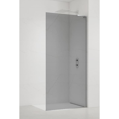 Sétálós zuhanykabin profilokkal és időjárásfüggéssel, króm és füst hatású dekorációban. A termék Easy Clean kivitelű a könnyebb tisztítás és a vízkőlerakódás minimalizálása érdekében. Nem nyitható - rögzített rendszer. Megnevezés - jobb oldali tájolás.