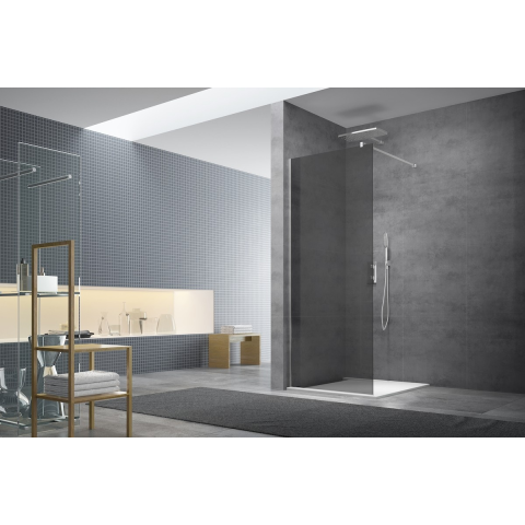 Walk-in zuhanyparaván profilok és merevítő nélkül és füsthatású dekorációval rendelkezik és füsthatású dekorációval rendelkezik. Easy Clean felületkezeléssel, amely megkönnyíti a tisztítást, és minimalizálja a vízkőlerakodást. Összecsukható nyitórendszer. Bal és jobb oldali tájolás is.