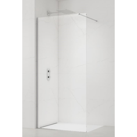 Walk-in zuhanyparaván profilokkal és merevítővel a profilok színével krómozott, a felület átlátszó üvegből készült dekor nélküli. Easy Clean felületkezeléssel, amely megkönnyíti a tisztítást, és minimalizálja a vízkőlerakodást. Fix - nem nyitható meg. bal és jobb oldali tájolás is.