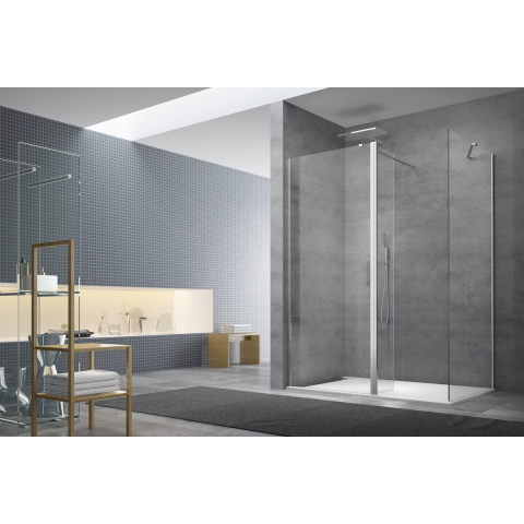 Walk-in zuhanyparaván fényes krómban, a felület átlátszó üvegből készült dekor nélküli. Easy Clean felületkezeléssel, amely megkönnyíti a tisztítást, és minimalizálja a vízkőlerakodást. Összecsukható nyitórendszer. Bal és jobb oldali tájolás is.
