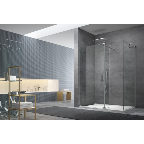 Walk-in zuhanyparaván fényes krómban, a felület átlátszó üvegből készült dekor nélküli. Easy Clean felületkezeléssel, amely megkönnyíti a tisztítást, és minimalizálja a vízkőlerakodást. Összecsukható nyitórendszer. Bal és jobb oldali tájolás is.