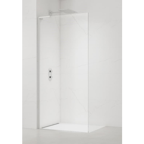 Fehér kivitelben profilokkal és szellőzővel ellátott zuhanykabin, a töltet átlátszó üvegből készült dekoráció nélkül. A termék Easy Clean felületkezeléssel van ellátva, amely megkönnyíti a tisztítást és minimalizálja a vízkő felhalmozódását. Nem nyitható - fix rendszer. Elhatározás – balra tájolás.