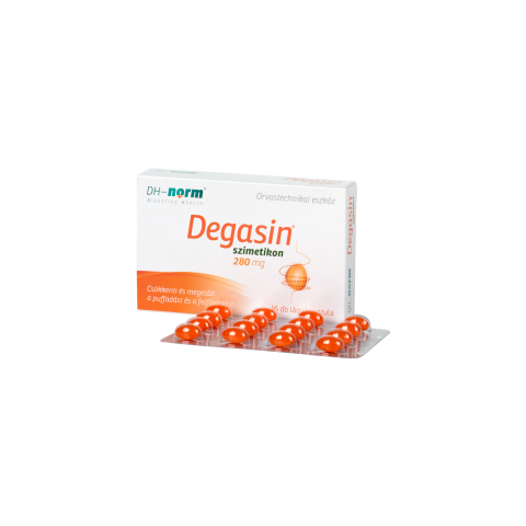 A Degasin® szimetikon hatóanyagú orvostechnikai eszköz, mely gyógyászati segédeszköznek minősül. A szimetikon fiziológiailag semleges hatóanyag (nem szívódik fel a szervezetben). A gyomor-bélrendszerben jelenlévő l