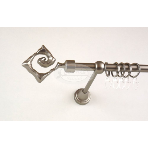 A WASHINGTON 240 cm-es nikkel-matt színű 1 rudas fém karnis szett tartalma: 1 db 240 cm-es nikkel-matt színű 16 mm átmérőjű fém karnisrúd 2 db Washington típusú nikkel-matt színű végzáró 3 db falra szerelhető fém konzol 24 db fém karika műanyag ráncszedő